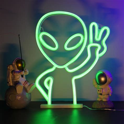 VIKLIU Green Alien Neon Sign USB Powered Alien LED Neon Light Signs For Man Cave Bedroom Game Room Bar Pub Party Home Decor Fantasy Gifts For Alien
