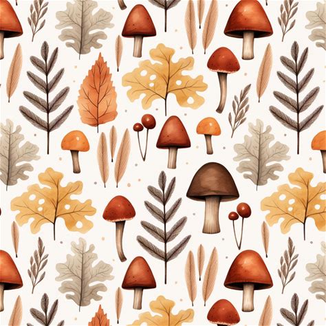 Autumn Mushroom Fabric Pattern: Seamless Floral Tile (Digital File)