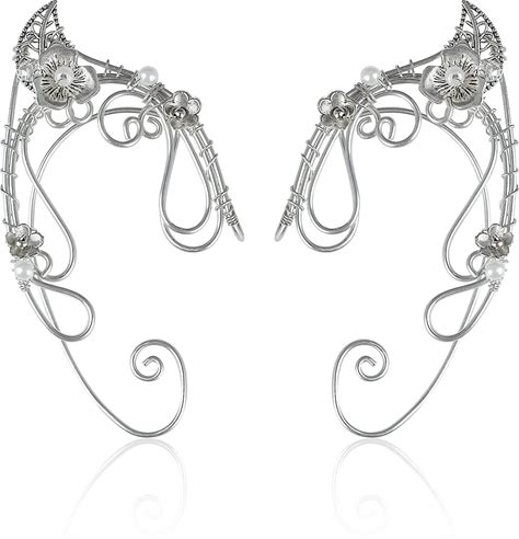 Elven Ear Cuffs For Women, Handmade Elf Fairy Earrings Cuff Wrap Clip-On Filigree Earrings For Fantasy Fairy Halloween Costume, Cosplay, Wedding,