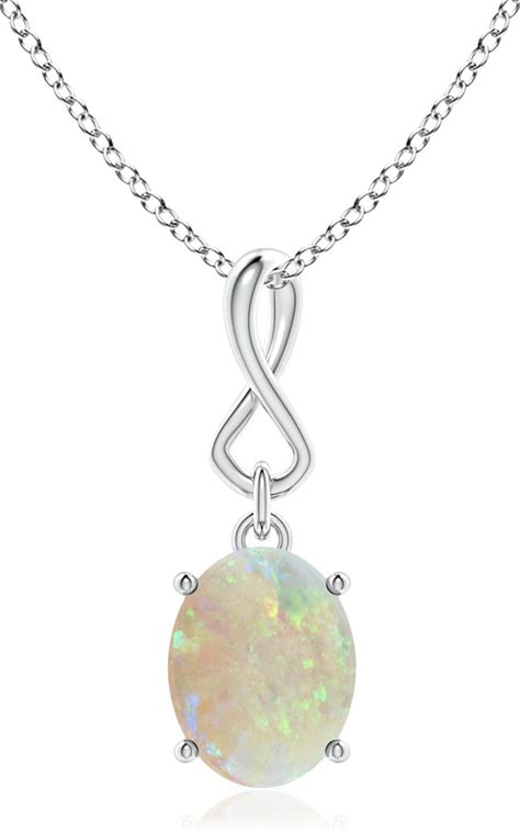 Angara 0.8 CTW Oval Opal Dangle Pendant With Infinity Loop Bale In 18K White Gold
