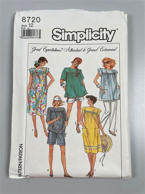 Simplicity 8720 FF Uncut Maternity Easy To Sew Shorts Pants Dress Or Tops Size 12 Bust 34" 1988 Learn To Sewing Pattern Vintage Fun Gift