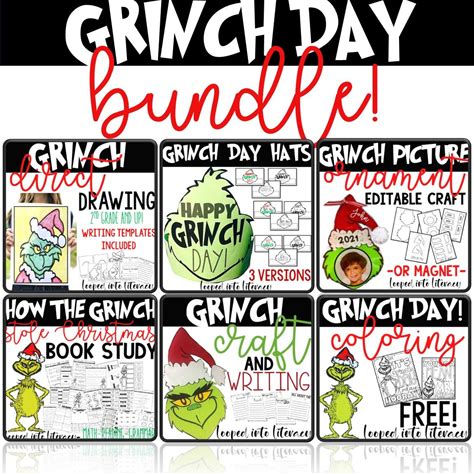 GRINCH Day Bundle Ornaments Drawings Coloring Crafts Writing Hats Book Study