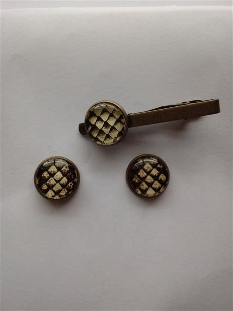 Year Of The Snake Python Tie Clip Cuff Links, Antique Brass Men's Tie Tack Cuff Links, Photo Jewelry Style