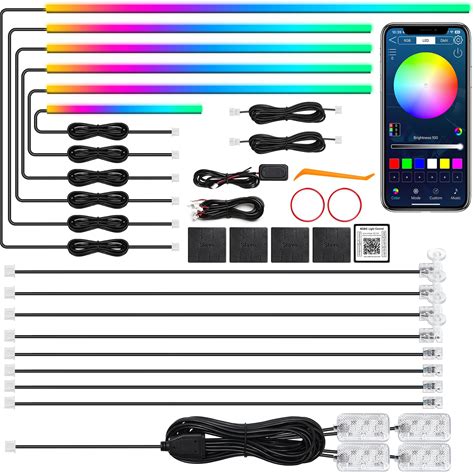 Dreamcolor Acrylic Interior Car LED Strip Light,RGB 6 in 1 Ambient Lighting Car With Wireless APP,175 Inches 600 LED Music Sync Led Lights Kits,16