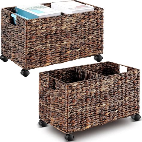 2 Pcs 23 X 12.5'' Wicker Cart File Cabinet With Wheels Rolling Storage Basket File Box For Home Office Filing System Storage Recycling Sorting Bin(1)