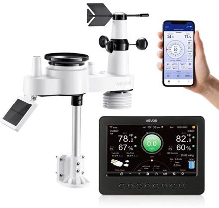 VEVOR 7-In-1 Wi-Fi Weather Station 7-Inch Tft Display Wireless Solar Powered Outdoor Sensor Rain Gauge Indoor Outdoor For Weather Forecast Wind Speed