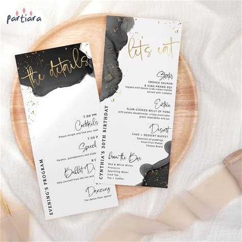 Program Card Editable Template Black And Gold Birthday Dinner Party Table Programs Printable Digital Download For Men Or Ladies Events P86