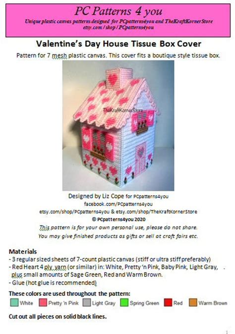 Pdf PATTERN - Valentine's House Tissue Box Cover - Pdf Download