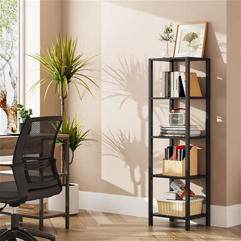 TUTOTAK Bookshelf, 5-Tier Tall Book Shelf, Narrow Bookcase For Small Space, DIY Stackable Bookshelf, For Living Room, Office, Study, Entryway,