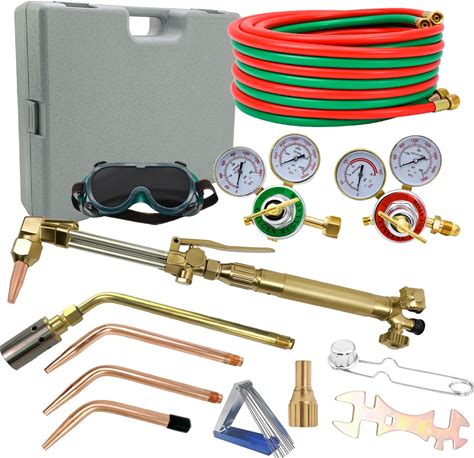 Oxy Acetylene Torch Kit, 14PCS Portable Cutting Torch Kit With Oxygen Acetylene Tanks Soldering Accessories For Iron Or Steel Welding, Braze-Welding, Plus Brazing, Cutting, Red(Red)