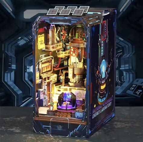 DIY Sci-Fi Book Nook - Wooden 3D Puzzle Kit - Mini Energy Laboratory Bookend | Handmade Factory Bookshelf | DIY Craft Set