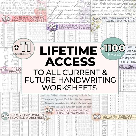 Handwriting Practice Worksheets Bundle Lifetime Access, Cursive Writing Practice Worksheets, Improve Handwriting Neat Elegant Monoline Cute
