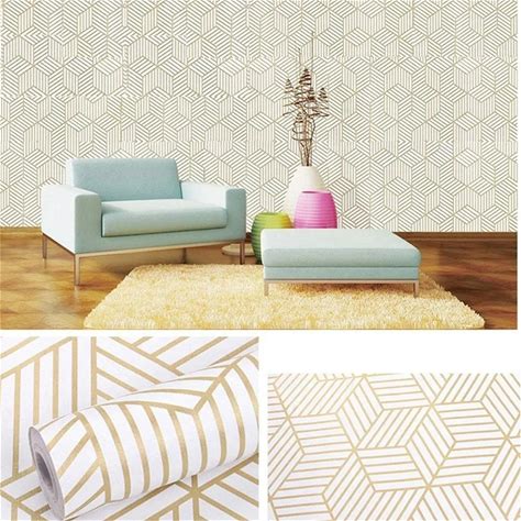 Fiula Hexagonal Wallpaper Geometric Peel And Stick Wallpaper 17.3"×393"Gold And White Contact Paper Decorative Shelf Drawer Liner Roll Waterproof