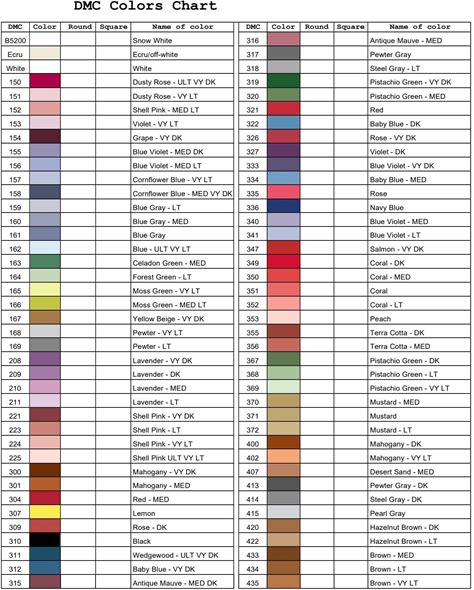 Printable Complete DMC Colour Thread Chart: Full Floss Tracker Numbers And Names 150-3866 PDF