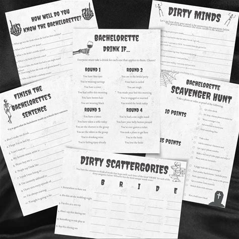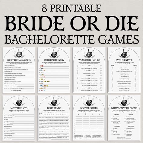 Bride Or Die Bachelorette Games Printable Til Death Do Us Party Bach Games RIP Single Life Black Gothic Skeleton Bachelorette Party Hen BD1