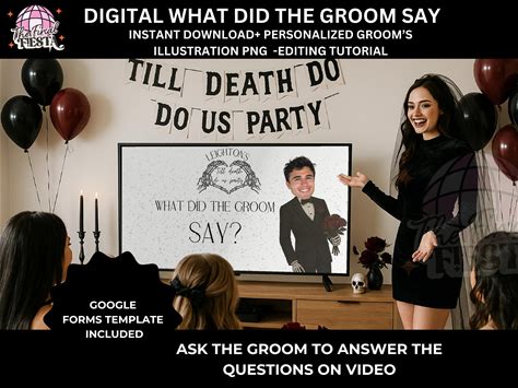 Bride Or Die What Did The Groom Say Trivia Game, Til Death Do Us Party Drinking Games, Halloween Bachelorette, Hen Do Gothic Games Emo Theme