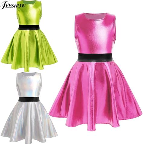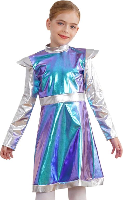 Alien Girls Halloween Fancy Dress-Up Metallic Long Sleeve Zip A Line Dress With Leg Cover Outerspace