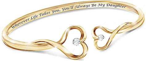 Always My Daughter 18K Gold-Plated Bracelet Featuring An Open Bangle Design With 2 Sculpted Hearts At Each End Set With Their Own Solitaire Diamond By The Bradford Exchange