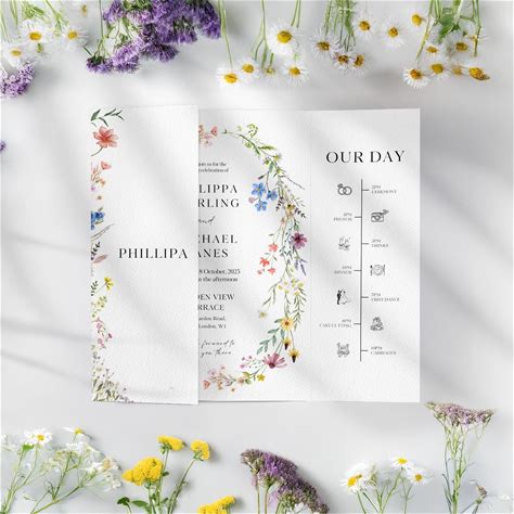 Hand-Drawn Floral Wedding Invitation - Editable Funky Gate Fold Wedding Birthday Invite RSVP QR Code