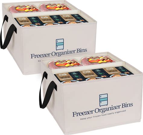 Flenpptly Freezer Organizer Bins, 2 Pack Collapsible Deep Freezer Organizer Bins For 15"X14"X9", Freezer Storage Bins With Removable Dividers, Handles