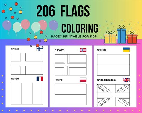 Flags Coloring Pages Printable For Kids, Coloring Pages Printable For Kids, PDF File US Letter, Instant Download.