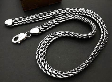Mens Handmade Oxidized Sterling Silver Python Chain Necklace
