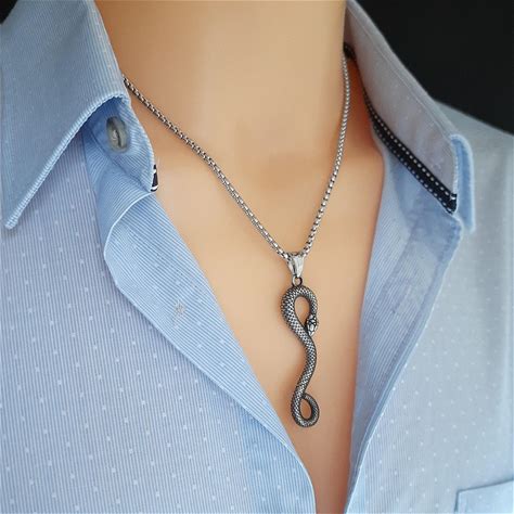 Snake Necklace Mens Python Snake Pendant Viper Necklaces For Men