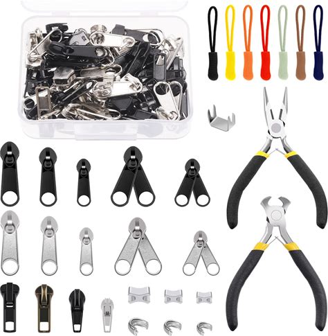 Eutenghao 169Pcs Zipper Repair Kit Zipper Replacement Zipper Pull Rescue Kit With Zipper Install Pliers Tool And Zipper Extension Pulls For Clothing